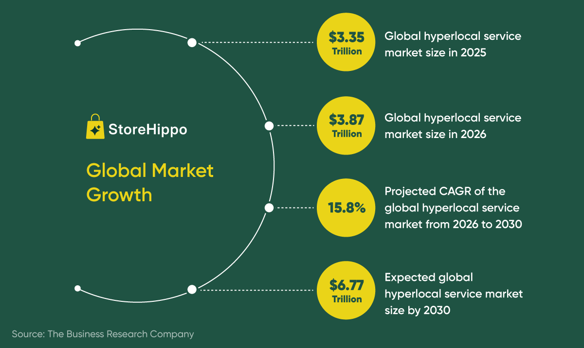 - $3.87 Trillion is the global hyperlocal service market size in 2026
