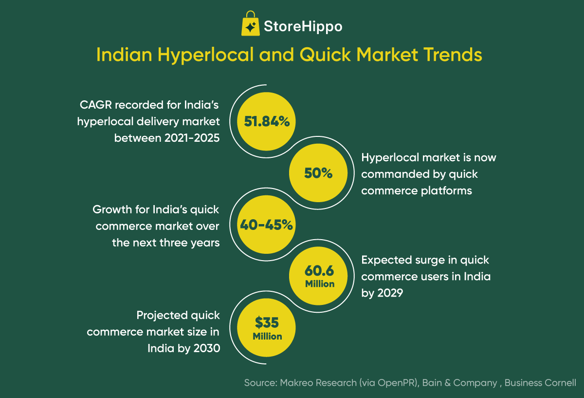 - 40% of India’s ecommerce businesses are involved in hyperlocal commerce.