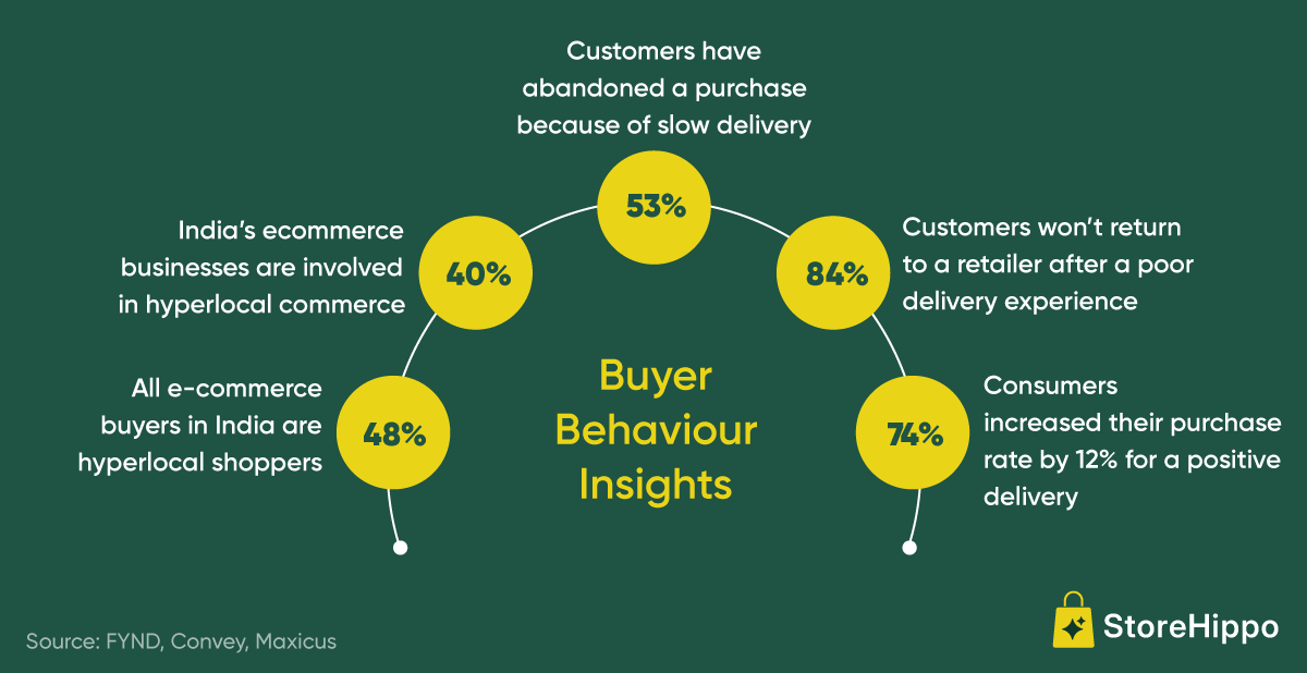 - 48% of all e-commerce buyers in India are hyperlocal shoppers