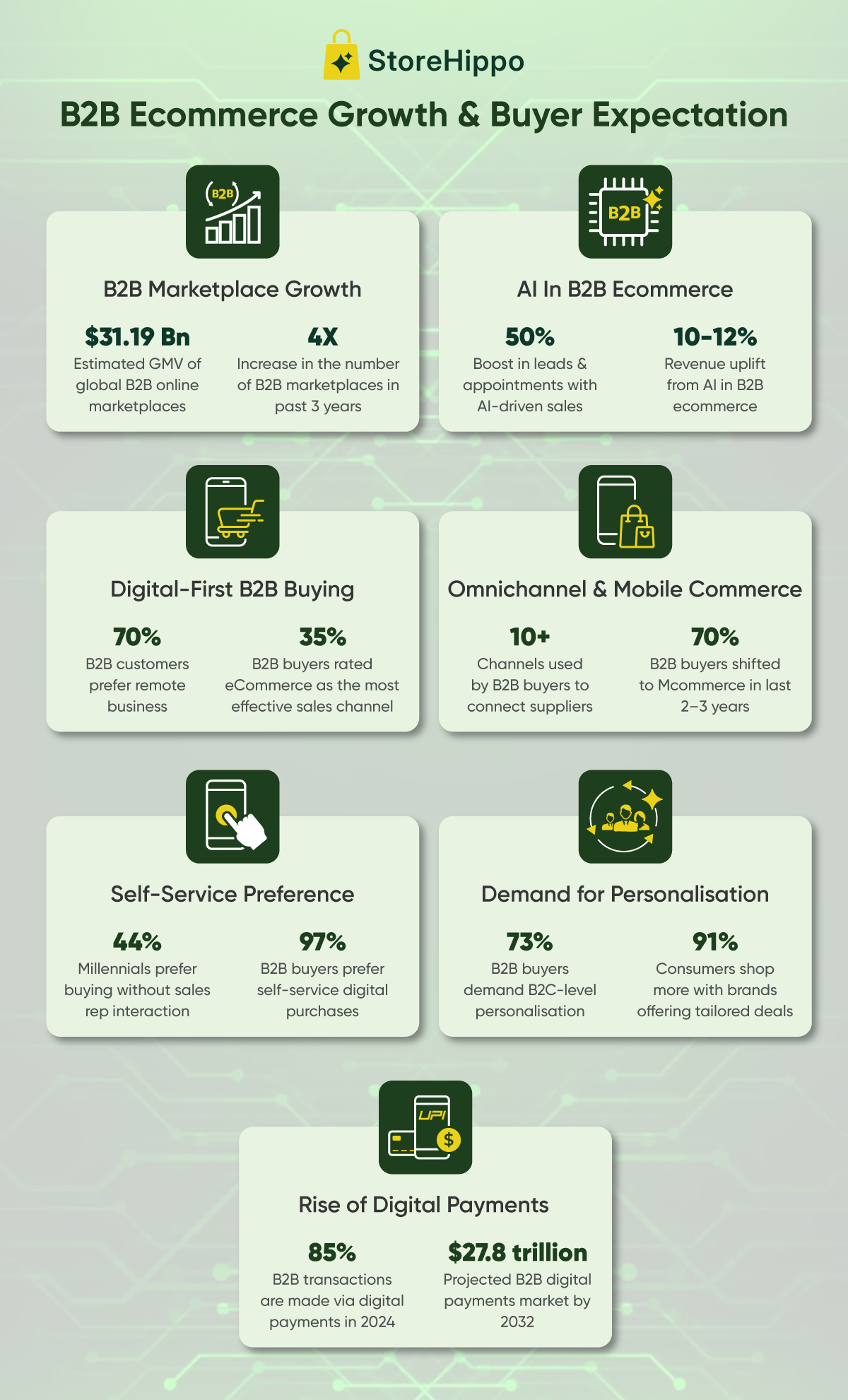 - 85% of B2B transactions are made via digital payments in 2024