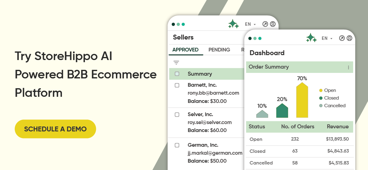 Experience how StoreHippo AI solutions for B2B ecommerce can transform your business. Book your demo today.