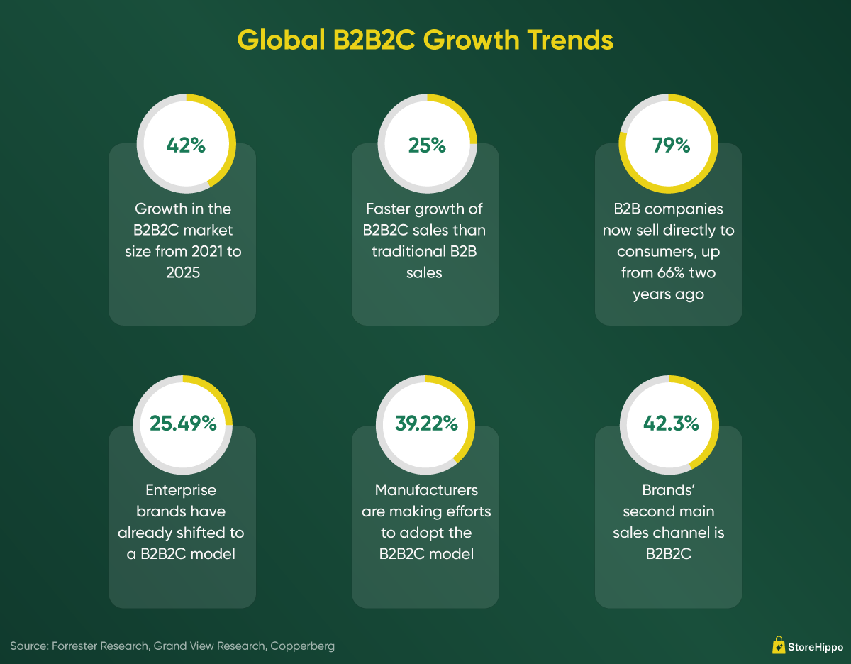 - 42% growth in the B2B2C market size from 2021 to 2025