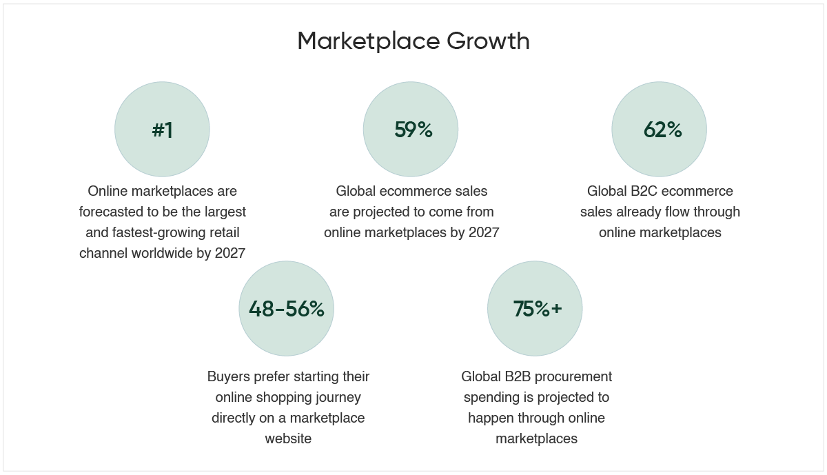 - 62% of global B2C ecommerce sales already flow through online marketplaces