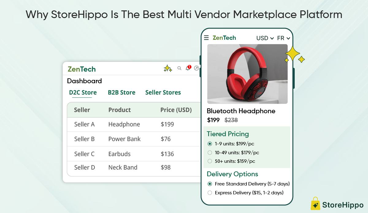 The SaaS-based, AI-native marketplace platform StoreHippo comes with native multi-vendor, multi-model, and multi-store capabilities, and 300+ enterprise grade features, enabling enterprises to implement modern marketplace trends without rebuilding their core for every new requirement. Instead of managing tools, teams orchestrate growth from sellers and buyers to fulfilment and intelligence from one platdorm.