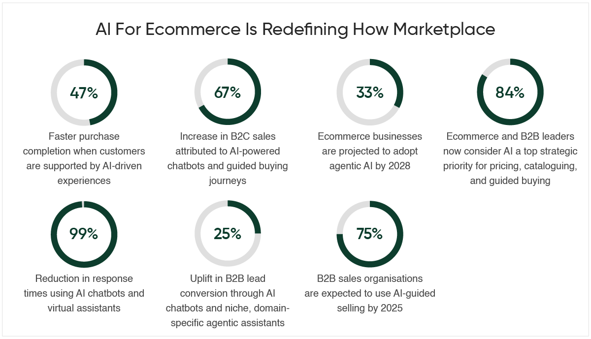 With the changing ecommerce trends 2026, marketplace success is less about rapid expansion and more about intelligent execution, guiding discovery, enabling confident decisions, and scaling complexity without chaos. AI is the force reshaping this new marketplace playbook.