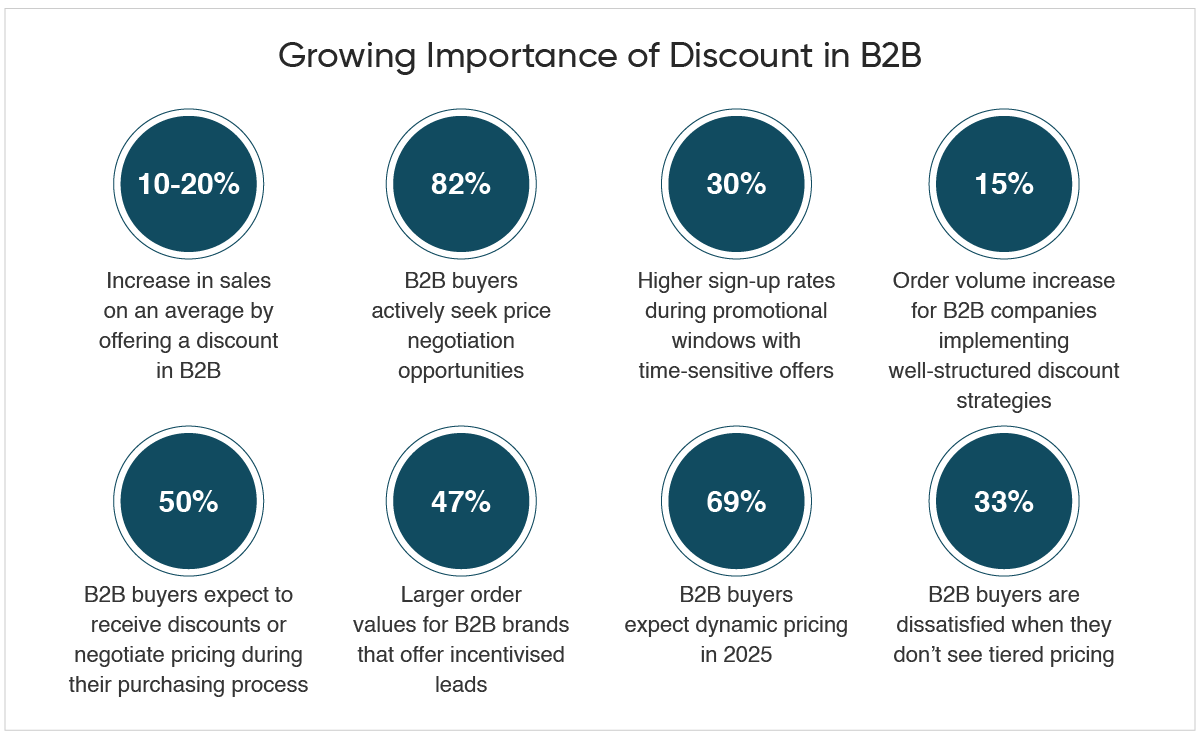 Well, it is widely known that unlike B2C, where impulse buying plays a big role, B2B buyers focus on value, long-term partnerships, and cost-effectiveness. This makes pricing strategies, especially discounts, a crucial factor in driving sales and building customer loyalty.