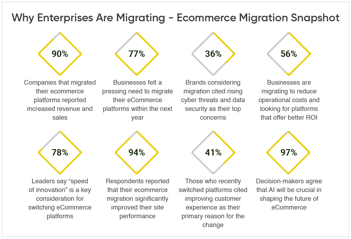 - 90% of companies that migrated their ecommerce platforms reported increased revenue and sales.
