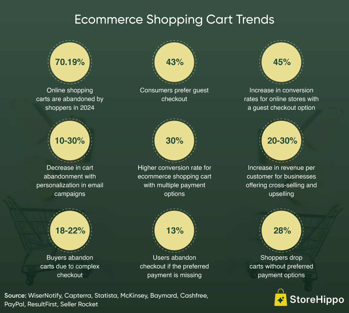 Source: WiserNotify, Capterra, Statista, McKinsey, Baymard, Cashfree, PayPal, ResultFirst, Seller Rocket