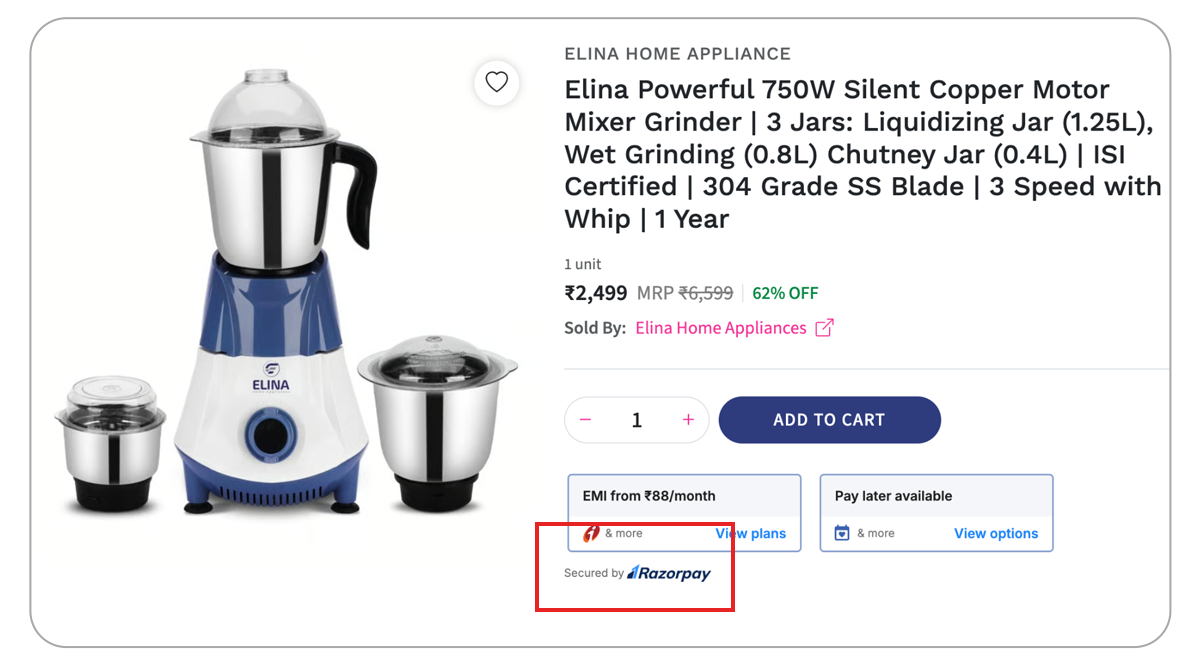 Providing multiple payment options on your online marketplace is crucial to cater to a diverse customer base with varying preferences. Some shoppers prefer credit cards, while others opt for digital wallets, UPI, or some even opt for cash on delivery. A limited option of payment methods can lead to cart abandonment. The solution? Offering a variety of choices. It enhances convenience, builds trust, and increases the likelihood of completing a purchase. A smooth and secure payment experience is vital for fostering customer confidence and ensuring higher conversion rates.