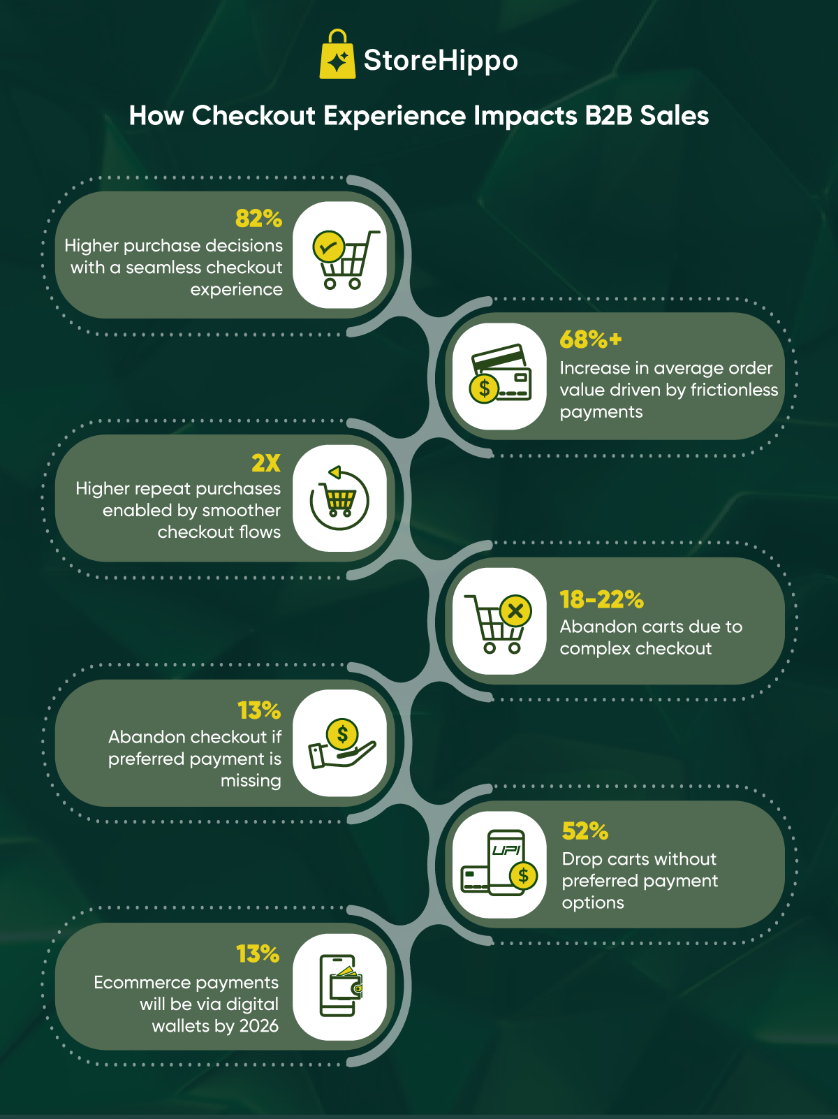 Before we dive into the essentials of how to build a B2B marketplace that offers a seamless, high-converting checkout experience, it’s important to understand how checkout experience and payment flexibility directly influence buyer behaviour and sales outcomes.