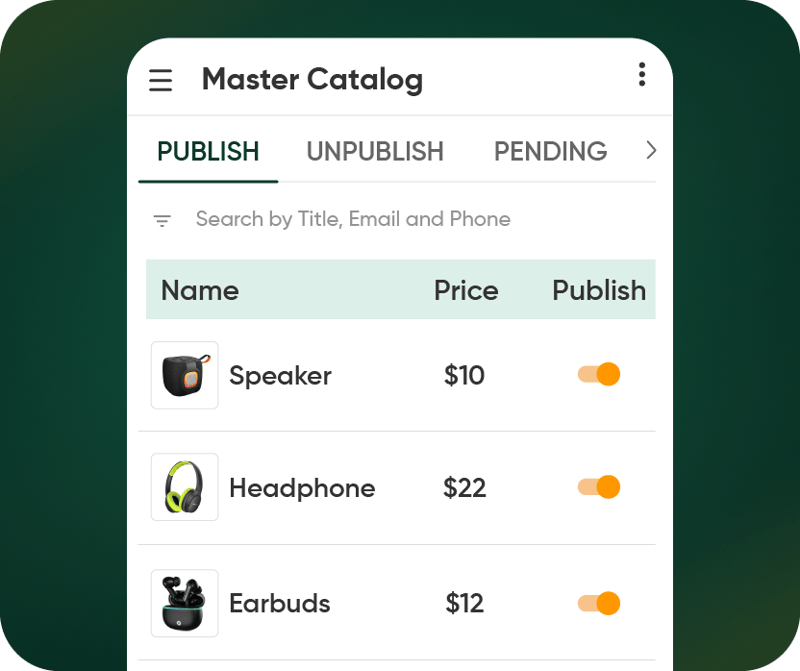 Manage a central, unified catalog for all products and sellers from one master admin dashboard