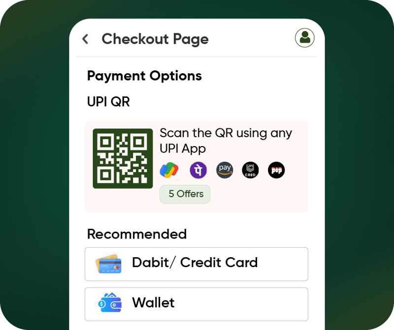 Boost conversions by offering multiple payment options like 60+ payment gateways, UPI, cards, wallets, and COD