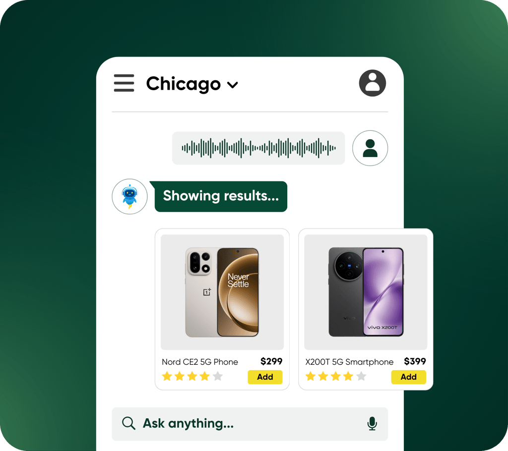 Cater to diverse buyer segments with multilingual, voice-based product search with AI that understands natural speech and buying intent