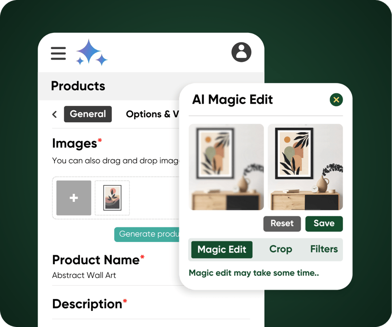 Auto-generate product catalogues and enhance images with AI that writes, edits, and optimises for faster sales